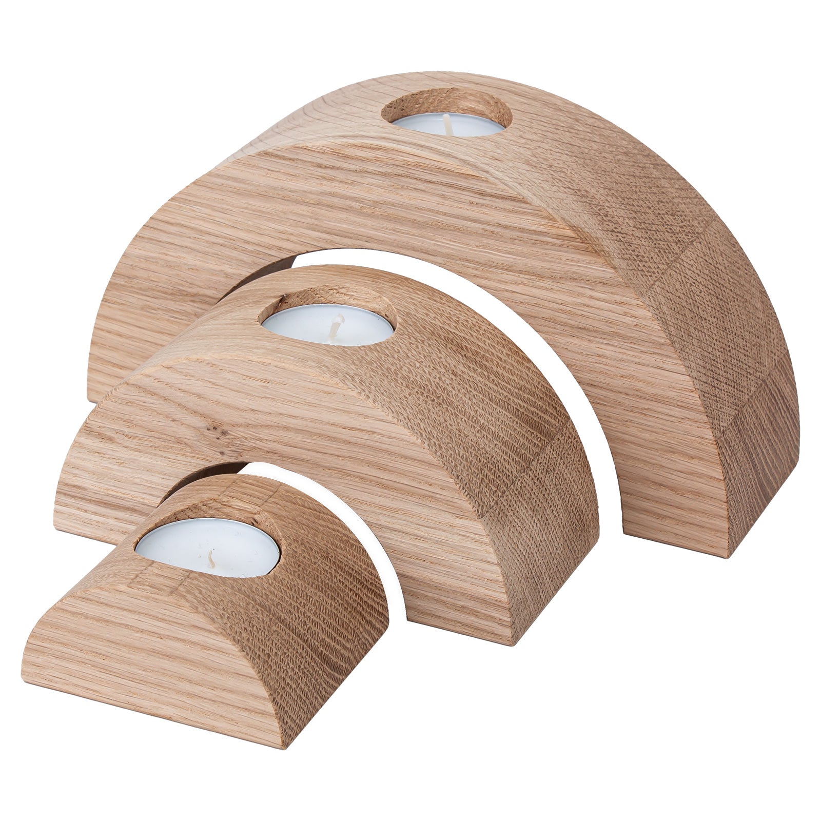 Wooden, rounded candlesticks with a minimalist design designed for tealight candles. Their appearance makes them suitable for any room. The oak, semi-circular candlestick will help you introduce a cozy atmosphere to the room. It will work perfectly on your table or fireplace.